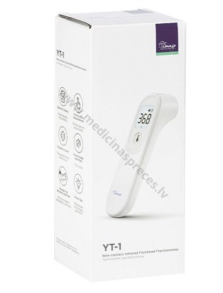 YT-1 termometrs ir pilnīgi bezkontakta — tas nozīmē, ka, lai iegūtu ticamu mērījumu rezultātu, nav nepieciešams kontakts ar pieri vai ausi.